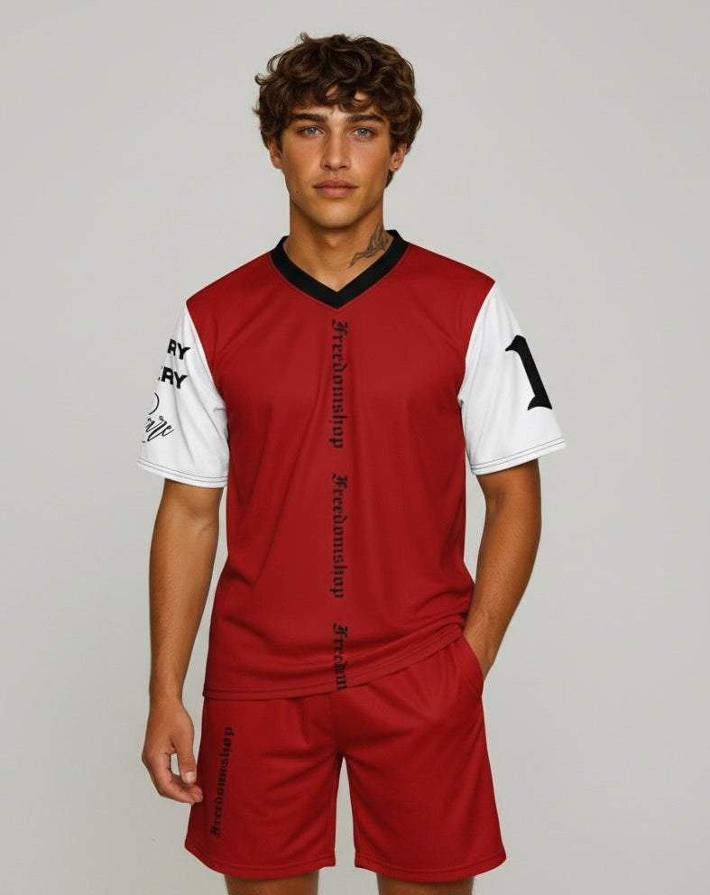 Looking for the perfect sports jersey? We have you covered—made of 100% recycled polyester fabric, this shirt is breathable, moisture-wicking, and has a double-layered v-neck collar that creates a premium look.