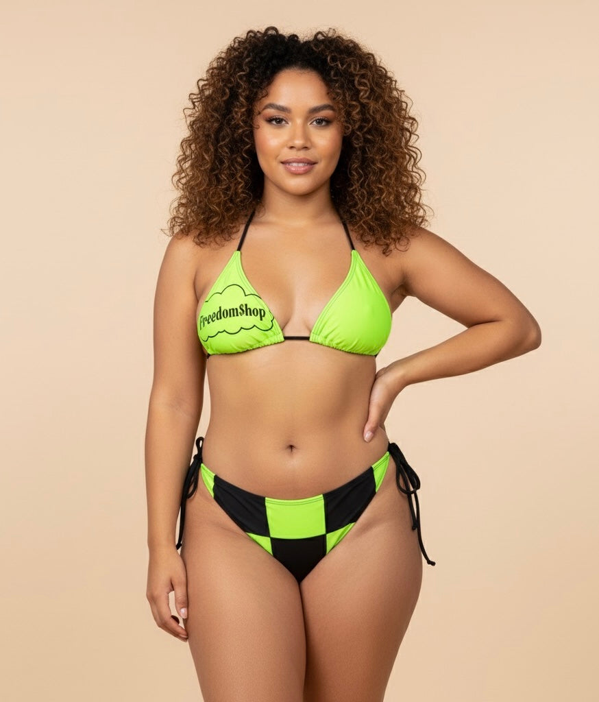 • To make your All-Over Print Recycled String Bikini last longer, thoroughly rinse it off after each use and get rid of any chlorine/salt residue.